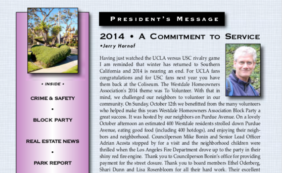 Inside the Winter 2014 edition (.pdf): Crime & Safety Block Party Real Estate News Park Report Getting to Know your Neighbors Westdale Wildlife Westdale Ads