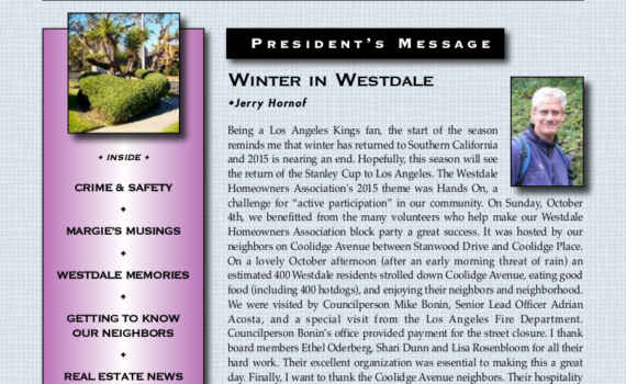 Inside the Winter 2015 edition (.pdf): Crime & Safety Margie’s Musings Westdale Memories Getting to Know your Neighbors Real Estate News Block Party Pictures Park Report Westdale Ads